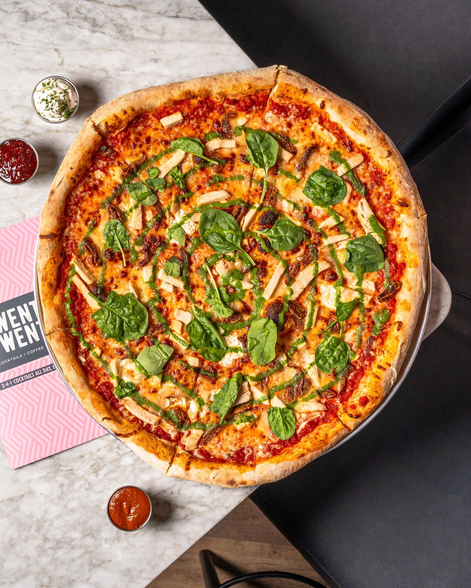 Happy Hours, Cocktails, Bottomless Brunch, Pizzas big enough to feed a whole family plus we’re dog friendly!